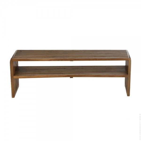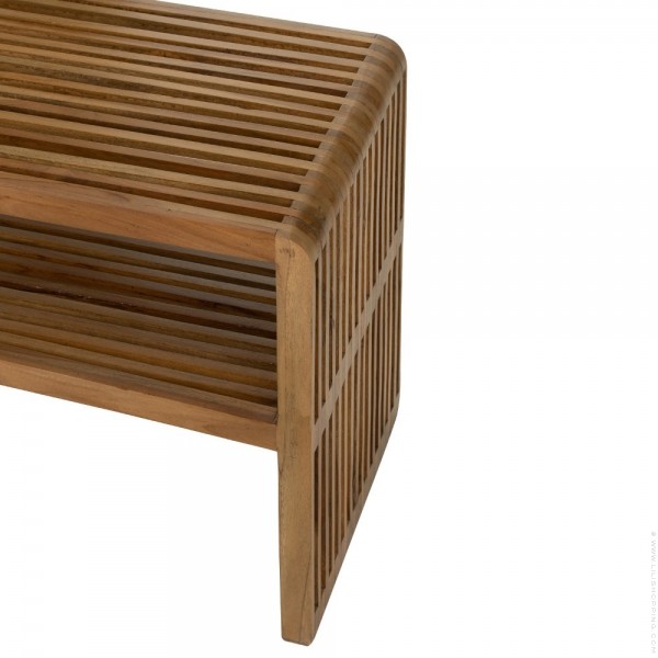 - The shape of this console is sleek. Its shelf offers an open storage space. There is a smaller model that allows a nesting combination and allows many combinations.