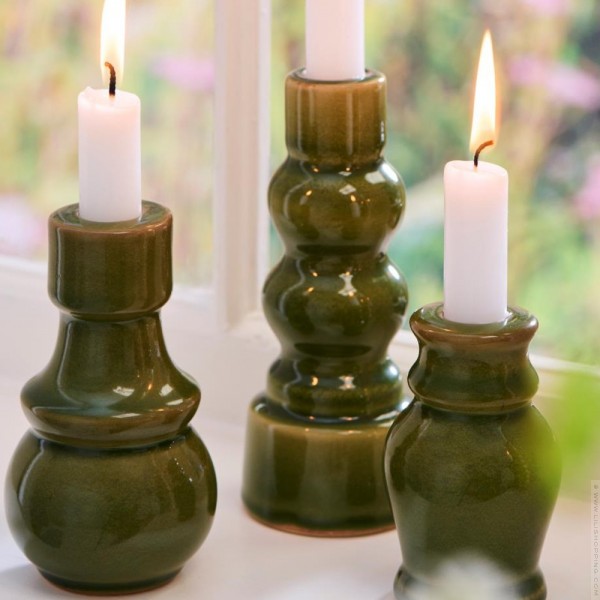 - In nuanced olive green sandstone, H 16 cm, D 6 cm, for candle diam 2 / 2.2 cm