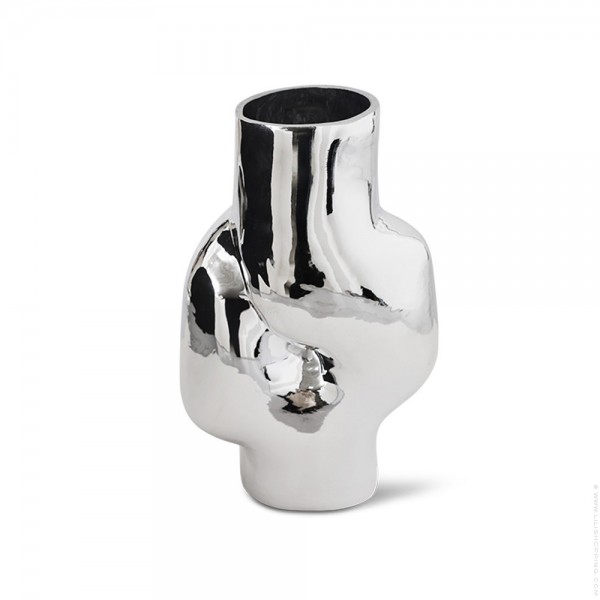 - Make a bold statement with this chrome glass vase. Its reflective surface and organic shape blend nature’s fluidity with a contemporary edge. Use it as a striking centrepiece or pair it with other pieces for a layered display.