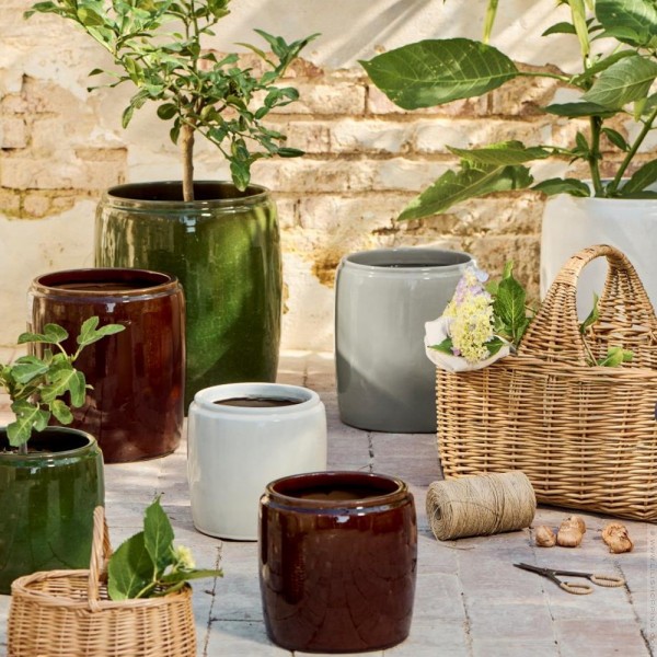 - Cylindric pot in an olive green color. Their timeless shape and elegant color make it perfect for showcasing flowers and green plants in any interior.