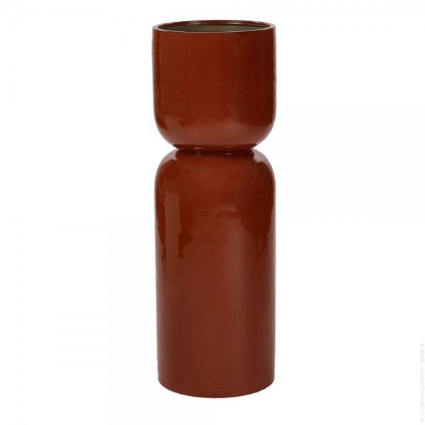 - This flower pot is made of enameled aluminum. With its organic shapes and warm color (rust color), it highlights each plant, whether in the living room or on a covered terrace