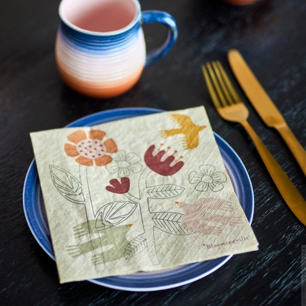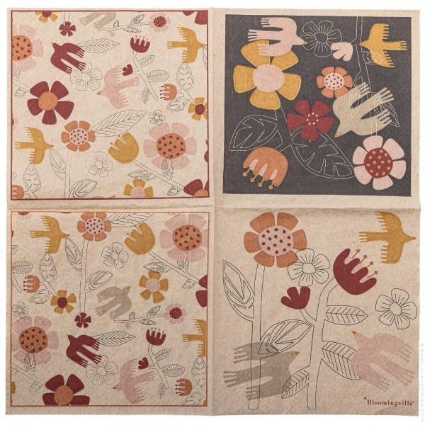 - These napkins feature a colorful pattern of flowers and birds, bringing a natural and decorative touch to the table. A nice note for everyday life as well as for small festive occasions