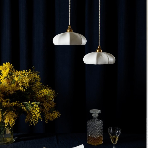- Elegant porcelain corolla, it imposes its pure lines. Hand-poured in a small series in Limoges, this precious shell blends with Lili above a country table, hangs harmoniously at the head of the bed, or in a bathroom.