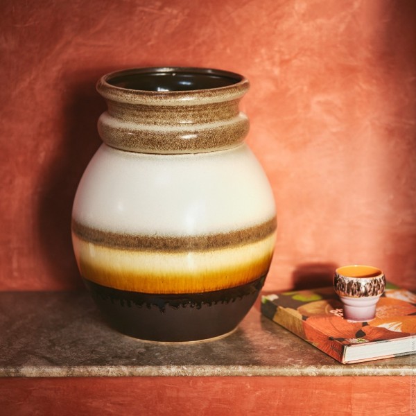 - Its earthy colors and elegant design make this large vase timeless. Made of high-quality ceramic, it is robust and refined, with a textured finish that adds depth to its appearance. Its generous size allows it to be placed on the ground or adorned with large branches