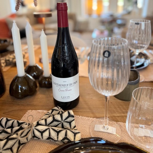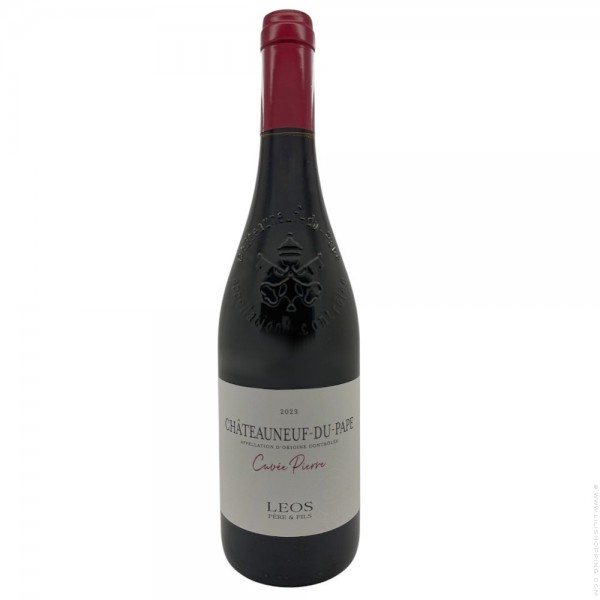 - Châteauneuf-du-Pape, cuvée Pierre 2023 Domain of Leos, 75 cl, 14.5% vol, AOP (Grenache, Syrah and Mourvèdre)
