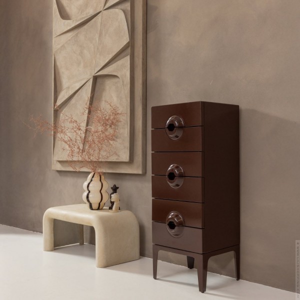 - This elegant piece of furniture is made of eucalyptus wood with six drawers, each with a handle carved in the wood. This chest of drawers is practical and decorative. Its sophisticated look and functional design make it a must-have!