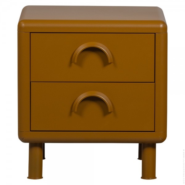 - Rune is a retro and industrial design nightstand equipped with two drawers, each with an arcuate handle.