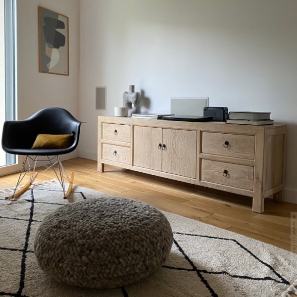 - Made from aged reclaimed solide pine wood, this furniture is the perfect piece to bring an authentic touch to your home. Its handles are made of matt black metal.