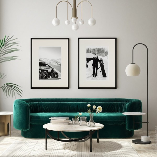 - Framed art print under glass with off-white all-around pass and black bevelled baguette wood frame