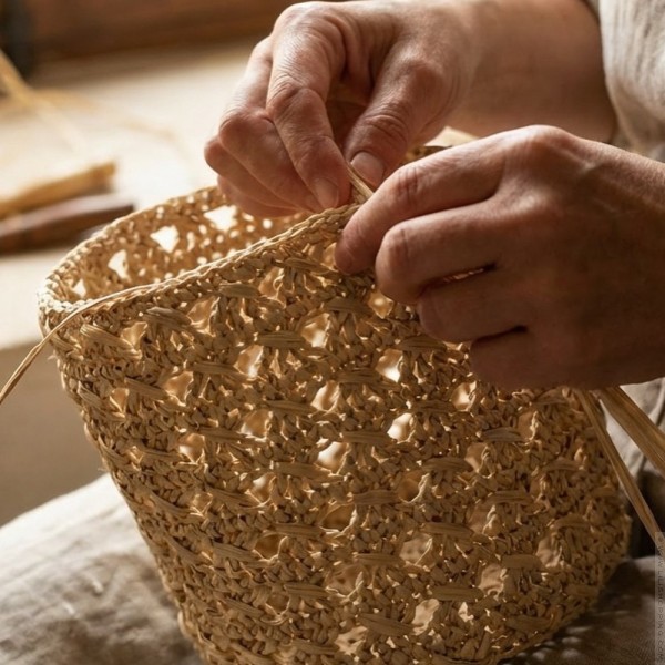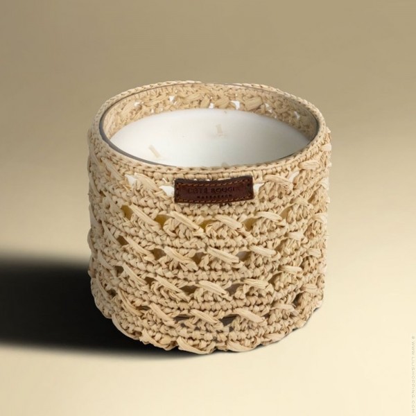 - This candle with a hand-woven raffia cover by a women’s cooperative in Essaouira offers an olfactory journey worthy of One Thousand and One Nights with warm, sweet, captivating and slightly spicy notes (Canelle head, heart of sandalwood and cedar, bottom, musk and vanilla)