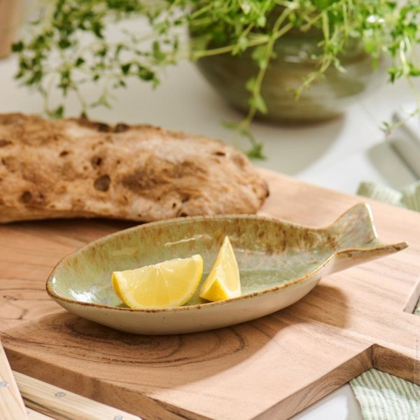 - This elegant cut is a tribute to the sea. The reactive enamel highlights color variations, giving each piece a unique look. Perfect the service or as a decorative element on the table.