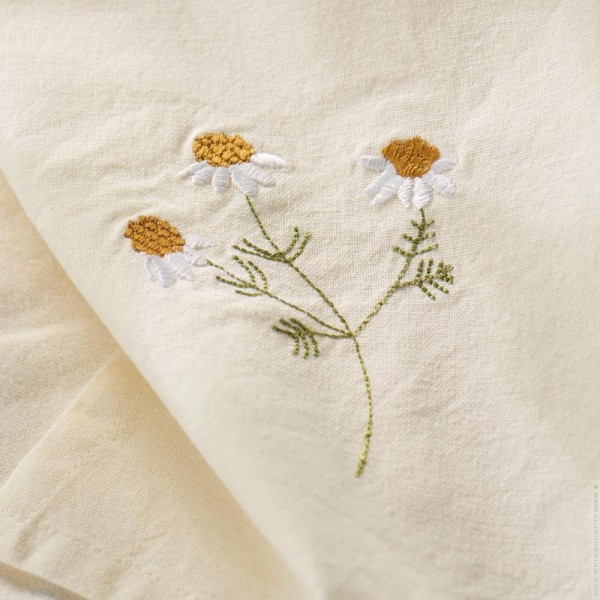 - These cotton napkins are particularly elegant thanks to their lovely ivory colour and the embroidered Pâquerettes pattern. In everyday life or on a festive table, it brings a charming and discreet detail. Place it with a bow in the middle on a plate or use a napkin ring for a chic touch.