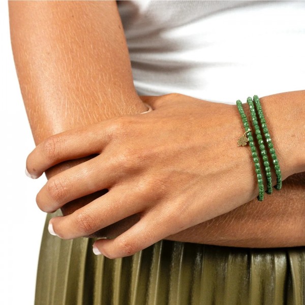 - Tetes Blondes 3 turn bracelet, clover gold green forest
