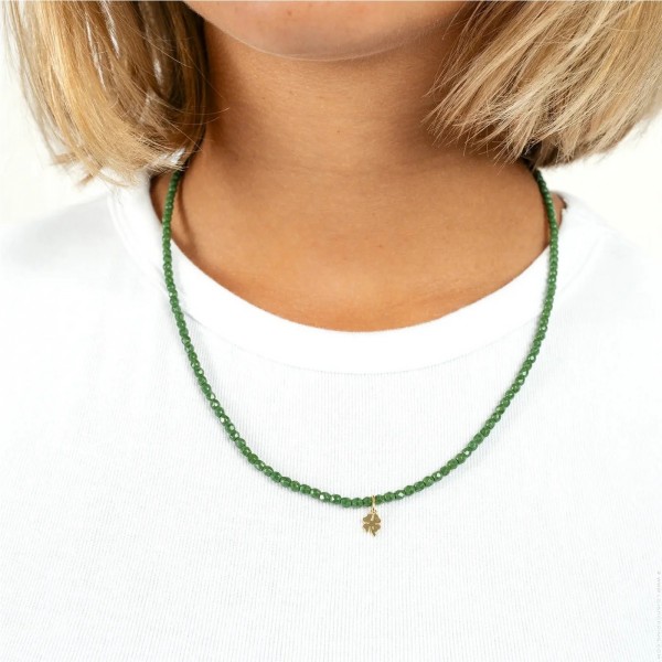 - Made with crystal beads (3 mm) dyed in the mass and faceted, gold platted clover