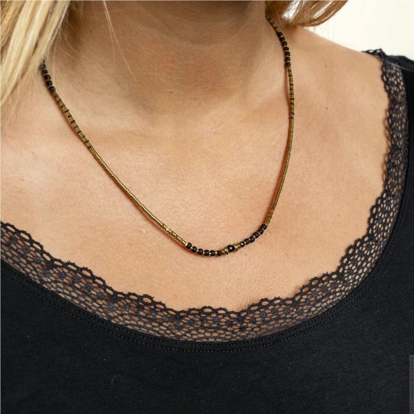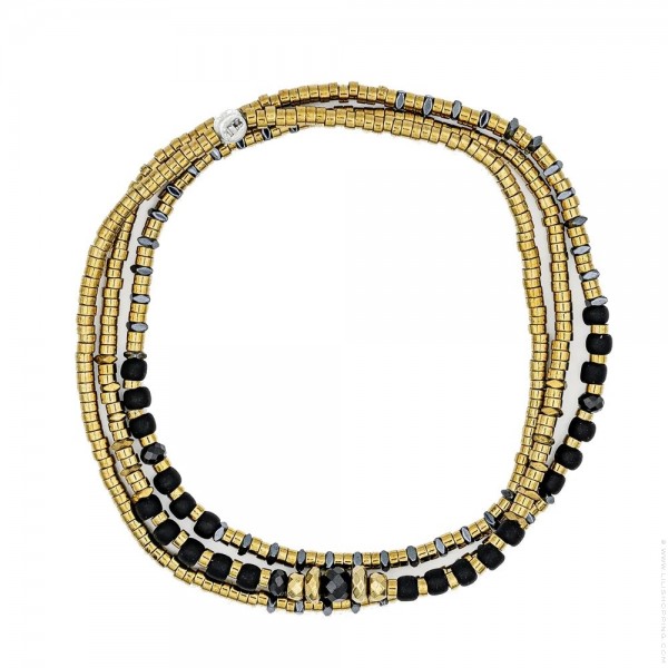- Made with gold hematites and black seed beads, it brings contrast and shine to your most beautiful outfits