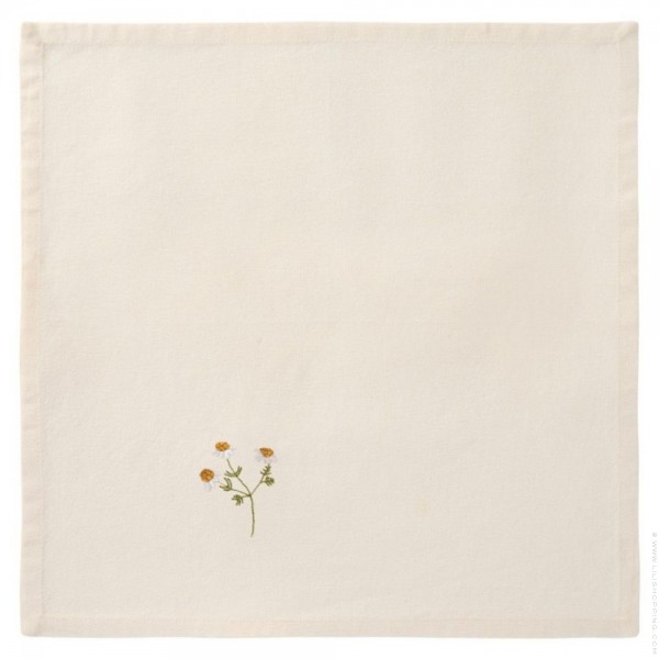 - Ces serviettes en coton sont particulièrement élégantes grâce à leur jolie couleur ivoire et le motif Pâquerettes brodé. Au quotidien ou sur une table de fête, elle apporte un détail de charmant et discret. Posez la avec un noeud au milieu sur une assiette ou utilisez un rond de serviette pour une touche chic