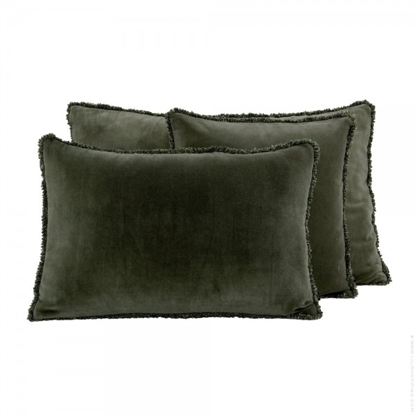 - Avec ses bords fangés, ce coussin est à la fois chic et décontracté. Le velours de coton reste doux et souple