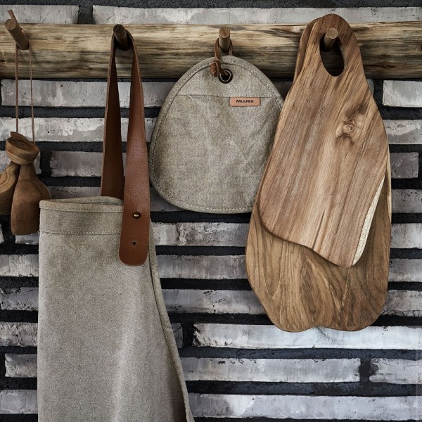 - Le teck est beau et fonctionnel en cuisine. Il contient des huiles naturelles résistantes à l’humidité et aux bactéries. La densité des fibres du bois rend les planches en teck plus résistantes que d'autres bois. A utiliser pour cuisiner, servir ou en déco grâce à son lien en cuir.
