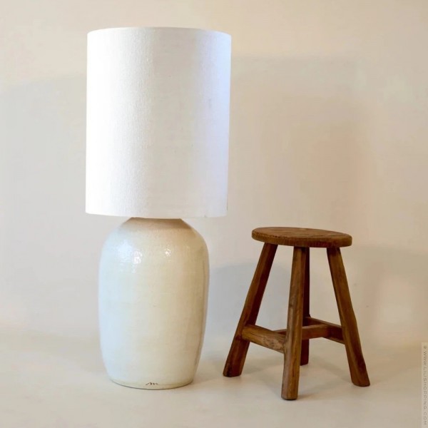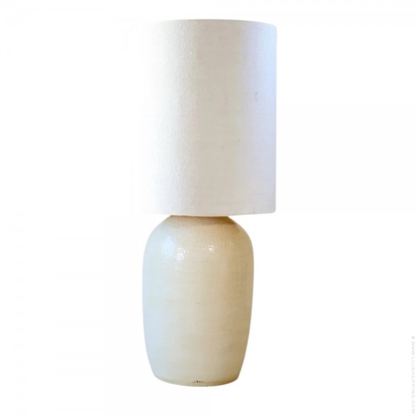 - Le pied est réalisé en terracotta patinée et laiton doré donnant à cette lampe un style contemporain et bohème à la fois. L'abat-jour est en jute blanc crème. L'ensemble est tout simplement splendide et intemporel.