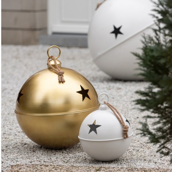 - Maxi boule de Noël à poser au sol avec des étoiles découpées en partie supérieure. Astuce déco, glissez une guirlande à l'intérieur, vous allez adorer.