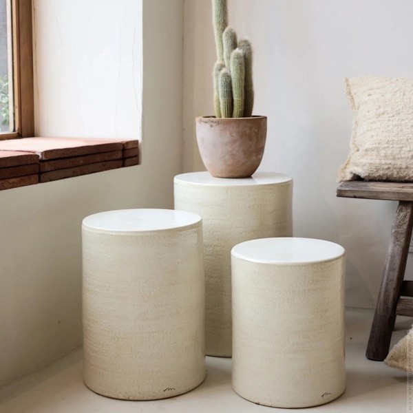 - Tournée à la main, cette petite table d'appoint est la fois contemporaine et bohème grâce à sa patine. Réalisée en céramique, elle s'adaptera facilement à votre intérieur et même votre extérieur (craint le gel). Combinez les tailles pour créer des ensembles uniques