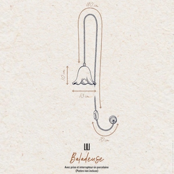 - Cette douce clochette de porcelaine émeut par ses formes enfantines. Elle rappelle les suspensions d'anta en verre ou en opaline. Coulée à la main en petite série à Limoges, elle sera parfaite en tête de lit, près d'un miroir ou pour illiminer un petit coin lecture.
