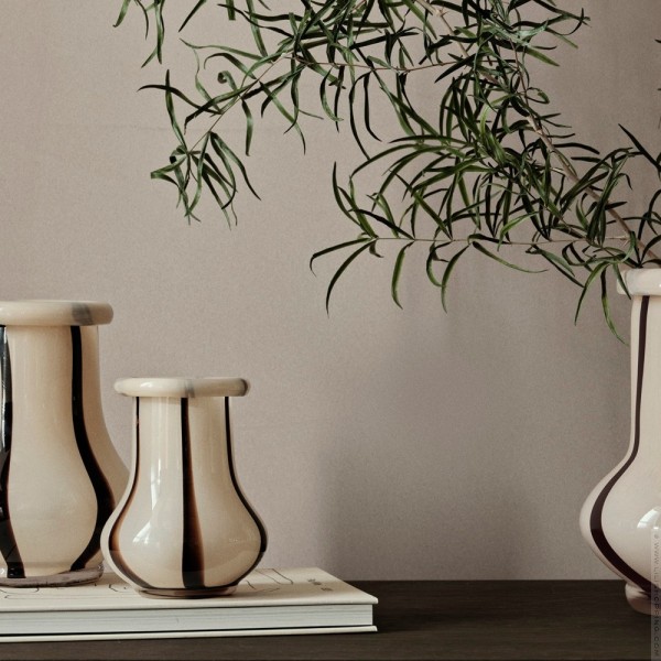 - Son design rappele les délices de la confiserie, porte un charme ludique et fantaisiste. Fabriqué à la main en verre, chaque pièce se présente comme une création unique, mettant en valeur le talent de l’artisan qui façonne et intègre soigneusement les lignes dans le corps du vase
