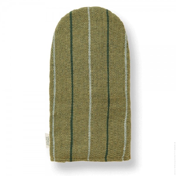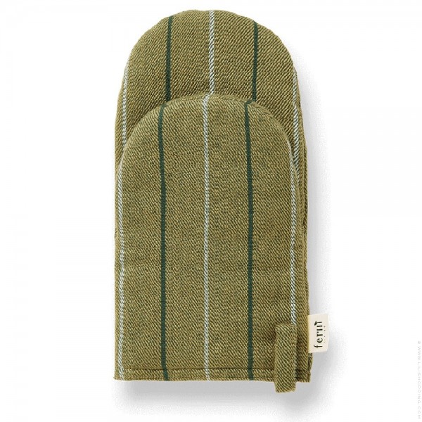 - Ce gant de cuisine présente un délicat motif à rayures entrecoupé d’un tissage sergé bicolore. Le design polyvalent convient aux gauchers et aux droitiers, tandis que la doublure intérieure rembourrée assure une protection contre la chaleur