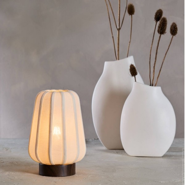 - Plongez dans une ambiance chaleureuse et accueillante avec cette lampe de table habillée toile blanche sur un piètement minimaliste en métal imitant le bois marron foncé. La lumière diffusée est douce et acceuillante