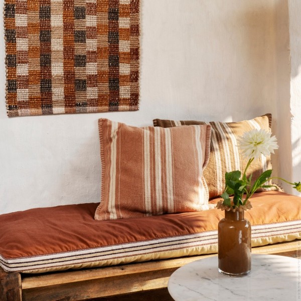 - Les rayures apportent une touche folk à ce coussin au style rustique et nordique.