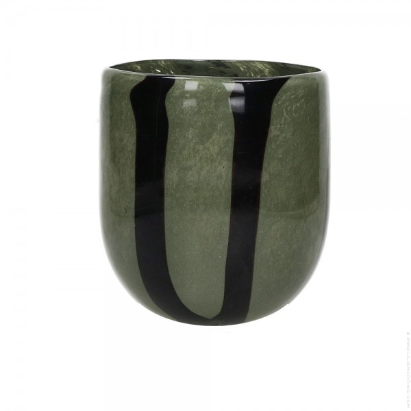- En verre coloré dans la masse et soufflé à la bouche. Avec ses jolis rayures larges, ce vase peut aussi être utilisé en photophore