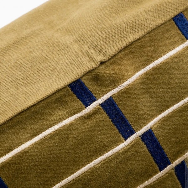 - Devant en velours de coton avec une broderie bleu indigo, dos en toile de coton robuste