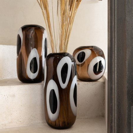 - Vase IZY M - Ce vase au style épuré et aux formes arrondies arbore des motifs artistiques. -...